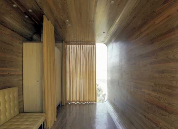 Душевая кабина скрыта в задней части. Слева расположены кровати, размерами напоминающие койки на корабле