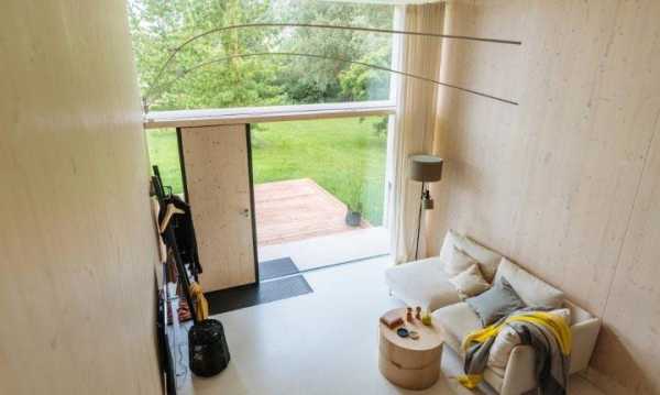 Дом с площадью почти 25 квадратных метров освещается солнечным светом благодаря стеклянному фасаду, что также помогает обогревать дом