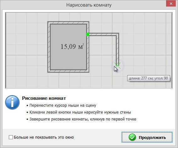С помощью него в сотом масштабе благодаря элементу «стена», который может ставиться сразу коробкой из четырёх стен или отдельными одинарными стенами, создаёте мини-копию своего частного дома. Когда вы двигаете стены, программа автоматически показывает размеры между стенами. Стены можно двигать как и вручную, так и забивать в табло слева параметры ширины и длины. Можно выбрать вид комнаты – от обычной квадратной до Г-образной и Т-образной.