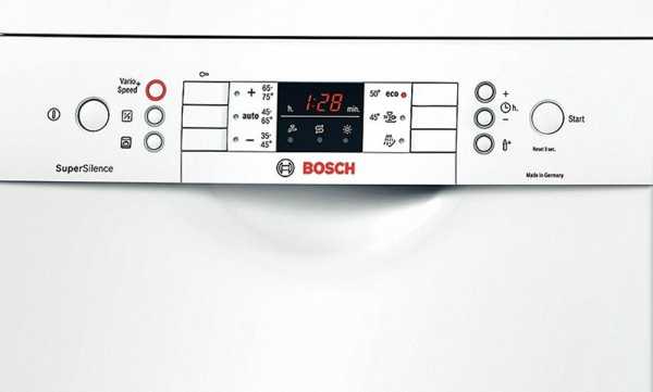 - Bosch SPV 58M50. Узкая посудомоечная машина (45 см) с защитой от детей и протечек. Расход воды 9 л, электричества — 0,91 кВт/ч. Оценка 4,5 балла из 5. Тихая (44 дБ), хорошо моет, не оставляет разводов. Большое количество кодов ошибок позволяет самостоятельно устранить большую часть «поломок». Из недостатков: требовательность к питанию. Лучше поставить стабилизатор на входе, так как платы управления чувствительны к перепадам. Цена — около 600$.