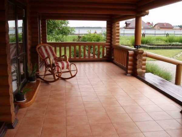 Неплохо также будет смотреться пол из плитки, тем более, что производители сейчас выпускают разнообразные стилистические решения на любой вкус и кошелек. Если вы делали в веранде теплый пол, то плитка из керамогранита удержит тепло зимой, а летом даст нужную прохладу. Единственным минусом пола из плитки является то, что если пол не утепленный, то он будет холодным в зимнее и осеннее время года. Но используя этот материал, вы имеете возможность воплотить в жизнь свои смелые идеи, например, сделать пол из плитки с принтом под дерево.