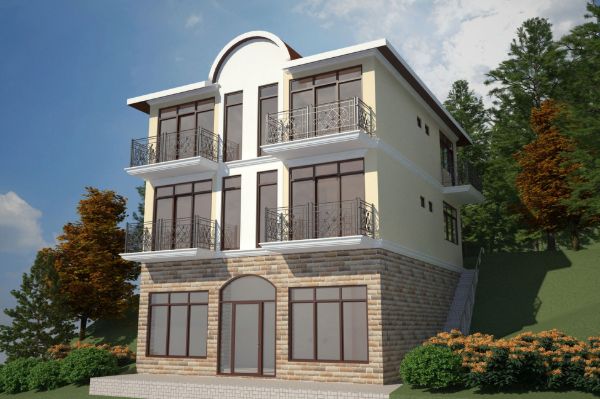 Участок в развитым уклоном сам подсказывает, что третий этаж будет цокольным и его необходимо вписать в рельеф. Вам представляется уникальная возможность разделить дом на несколько уровней по рельефу, каждый из которых будет иметь выход на участок. В нашем каталоге вы найдете несколько подобных проектов.