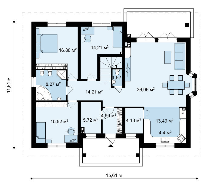 | Лестница | Одномаршевая, поворотная или двухмаршевая – по проекту.![]() |