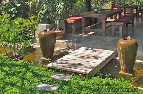 Иногда бывает так, что даже на дачном участке в 10 соток очень непросто подыскать подходящее место для беседки и перекинувшегося через водоем мостика, которые являются неотъемлемой композиционной составляющей дизайна.
