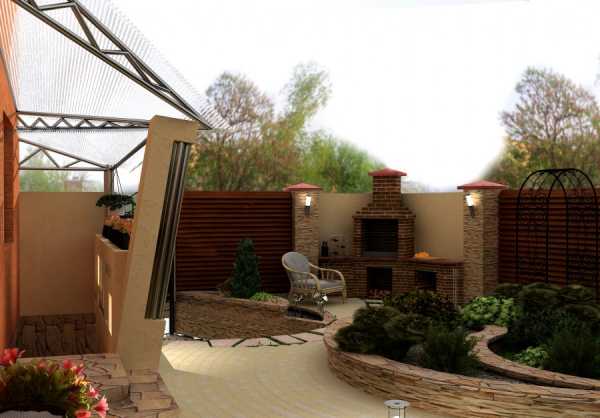 - зона отдыха (патио) с навесом, беседкой, мангалом и т.д