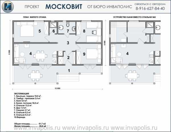 Планировочные решения проекта МОСКОВИТ выполнены с учетом поэтапного освоения участка — изначально построенный как небольшой временный дом, со временем он может быть трансформирован в подсобное сооружение с баней, гостевым жильём, котельной и кладовыми. Реконструктивные мероприятия при этом будут минимальными, так как будущие трансформации продуманы заранее, и первоначальная планировка сделана с оглядкой на возможные изменения. МОСКОВИТ 60 м2 – готовый проект небольшого жилого или удобного гостевого дома с сауной, размером 6 на 12 метров из бруса. На сайте дом представлен в следующих рубриках: Проекты узких домов проекты эконом — класса проекты одноэтажных домов проекты деревянных домов |