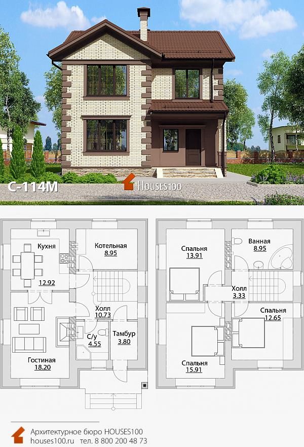 Проекты 2-х этажных домов из пеноблоков, фото и цены