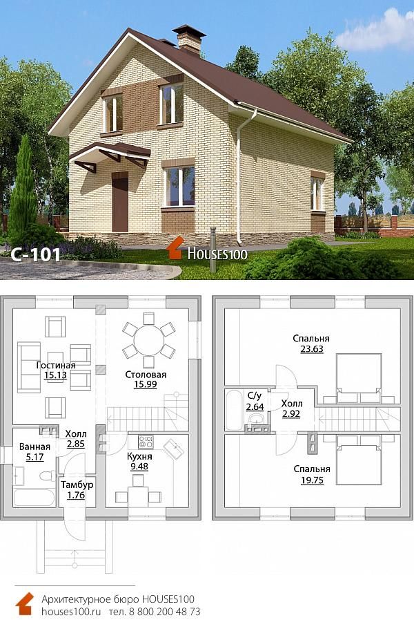 – можно построить одноэтажный дом с мансардой или без, полутораэтажный, двухэтажный с мансардой либо без нее.Конструкция и форма кровли