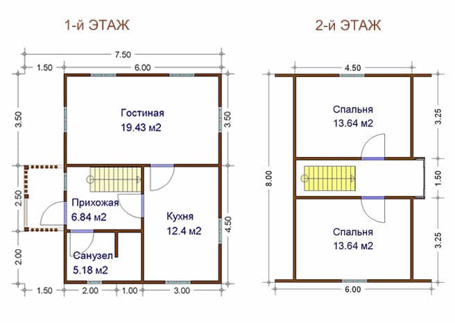 В таком случае второй этаж по площади получается таким же, как и первый, но выше средины стены получаются скошенными как в случае с обустройством мансарды.