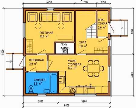 Проект с планировкой дома 9×11 с печью Кузнецова