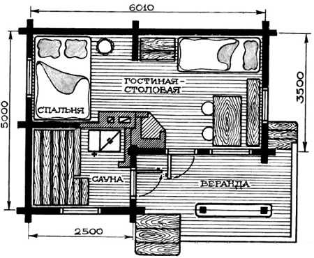 Проект небольшого домика 5 на 7 метров с верандойПричины, определяющие необходимость веранды: