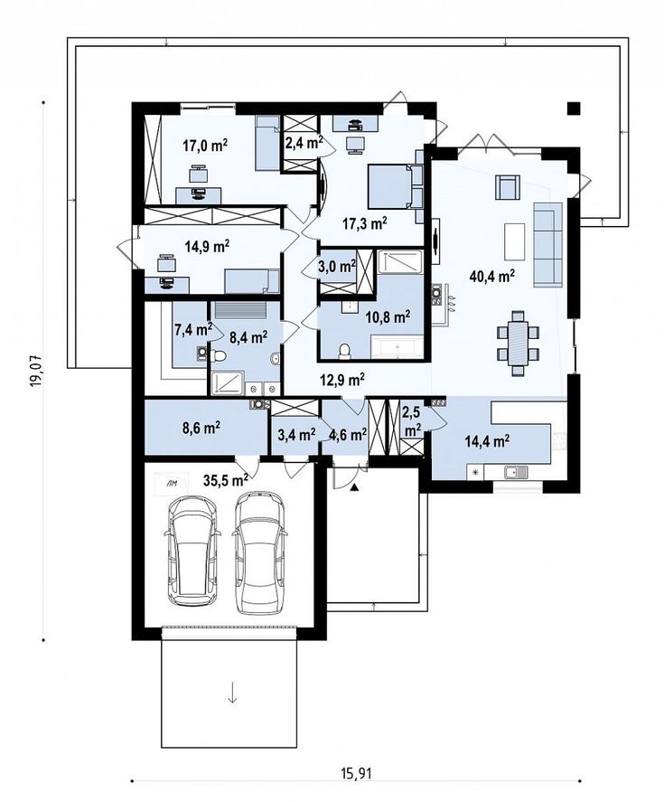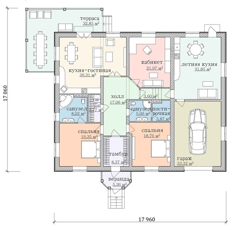 Проект дома одноэтажного дома с гаражом и баней: Проекты одноэтажных домов с гаражом, фото, цены, готовые и типовые. Каталог содержит планировки, планы и чертежи