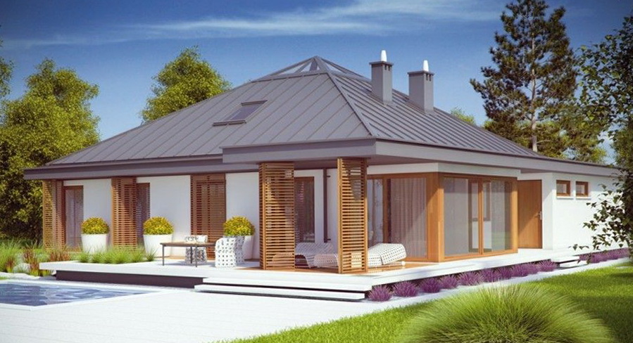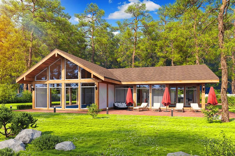 Проекты одноэтажных домов с панорамными окнами: фото и планировка