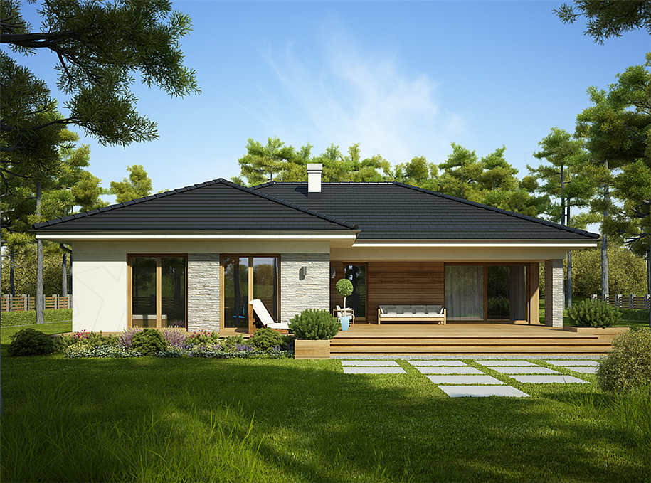 ГлавнаяКаталог проектов домовПроекты одноэтажных домов с панорамными окнами