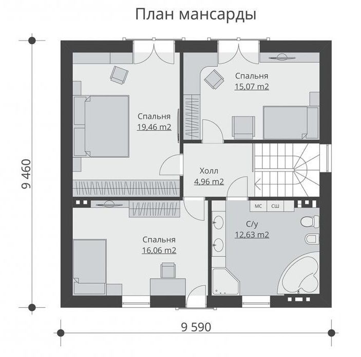 Внимание! Планировка дома 9х9 это не только внутренняя начинка. Мансарда, веранда, терраса, гараж или целый цокольный этаж органично сочетаются с набором комнат.