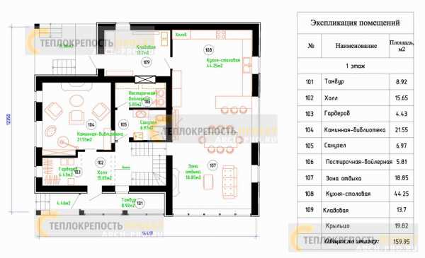 ΠΠΎΠ΄ Π±ΠΎΠ»ΡΡΠΈΠΌΠΈ ΡΠ²Π΅ΡΠ°ΠΌΠΈ ΠΊΡΡΡΠΈ Π½Π°Ρ ΠΎΠ΄ΡΡΡΡ Π΄Π²Π° Π²Ρ ΠΎΠ΄Π° Π² Π΄ΠΎΠΌ, ΠΎΠ΄ΠΈΠ½ ΡΠ΅ΡΠ΅Π· ΠΊΠ»Π°Π΄ΠΎΠ²ΡΡ Π² ΠΊΡΡ Π½Ρ-ΡΡΠΎΠ»ΠΎΠ²ΡΡ, Π²ΡΠΎΡΠΎΠΉ Π²Ρ ΠΎΠ΄ ΡΠ΅ΡΠ΅Π· ΠΏΡΠΎΡΡΠΎΡΠ½ΡΠΉ ΡΠ°ΠΌΠ±ΡΡ Π²ΡΡ ΠΎΠ΄ΠΈΡ Π² Ρ ΠΎΠ»Π» ΠΏΠ΅ΡΠ²ΠΎΠ³ΠΎ ΡΡΠ°ΠΆΠ° ΠΈ Π»Π΅ΡΡΠ½ΠΈΡΠ΅, Π²Π΅Π΄ΡΡΠ΅ΠΉ Π½Π° Π²ΡΠΎΡΠΎΠΉ ΡΡΠ°ΠΆ. ΠΠ° ΠΏΠ΅ΡΠ²ΠΎΠΌ ΡΡΠ°ΠΆΠ΅ ΡΠ°ΡΠΏΠΎΠ»ΠΎΠΆΠΈΠ»ΠΈΡΡ ΠΎΠ³ΡΠΎΠΌΠ½Π°Ρ ΠΊΡΡ Π½Ρ-ΡΡΠΎΠ»ΠΎΠ²Π°Ρ, ΡΠΎΠ²ΠΌΠ΅ΡΠ΅Π½Π½Π°Ρ Ρ Π·ΠΎΠ½ΠΎΠΉ ΠΎΡΠ΄ΡΡ Π°, ΠΊΠ°ΠΌΠΈΠ½Π½Π°Ρ β Π±ΠΈΠ±Π»ΠΈΠΎΡΠ΅ΠΊΠ°. Π’Π°ΠΊΠΆΠ΅ ΡΠ°ΡΠΏΠΎΠ»ΠΎΠΆΠ΅Π½Ρ Π²ΡΠΏΠΎΠΌΠΎΠ³Π°ΡΠ΅Π»ΡΠ½ΡΠ΅ ΠΏΠΎΠΌΠ΅ΡΠ΅Π½ΠΈΡ: Π³Π°ΡΠ΄Π΅ΡΠΎΠ±, ΡΠ°Π½ΡΠ·Π΅Π», ΠΏΠΎΡΡΠΈΡΠΎΡΠ½Π°Ρ β Π±ΠΎΠΉΠ»Π΅ΡΠ½Π°Ρ. ΠΠ»ΠΎΡΠ°Π΄Ρ ΠΏΠ΅ΡΠ²ΠΎΠ³ΠΎ ΡΡΠ°ΠΆΠ° Π΄ΠΎΡΡΠΈΠ³Π°Π΅Ρ 160 ΠΌ2, ΠΈΠ· Π½ΠΈΡ Π±ΠΎΠ»ΡΡΠ΅ ΡΡΠ΅ΡΠΈ Π·Π°Π½ΠΈΠΌΠ°Π΅Ρ ΠΊΡΡ Π½Ρ Ρ Π·ΠΎΠ½ΠΎΠΉ ΠΎΡΠ΄ΡΡ Π°. Π ΡΡΠΎΠΌ ΠΏΠΎΠΌΠ΅ΡΠ΅Π½ΠΈΠΈ ΡΠ΅Π»ΡΡ ΡΡΠΈ ΠΎΠΊΠ½Π°, ΠΎΠ΄Π½ΠΎ ΠΈΠ· Π½ΠΈΡ ΠΏΠ°Π½ΠΎΡΠ°ΠΌΠ½ΠΎΠ΅ Π²ΠΎ Π²ΡΡ ΡΠΈΡΠΈΠ½Ρ ΠΈ Π²ΡΡΠΎΡΡ ΡΡΠ΅Π½Ρ.