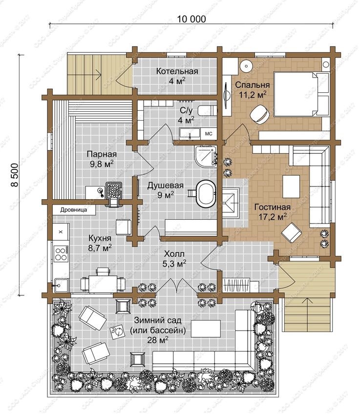 Проекты домов-бань с террасой