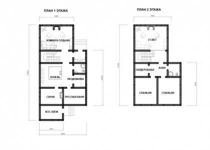 Пример планировки двухэтажного гостевого дома с баней