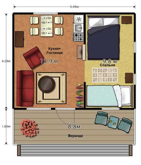 Наиболее экономным вариантом является дом, планировка которого предусматривает наличие только спальной зоны, а также санузла (в некоторых случаях обходятся даже без него). Важными его преимуществами являются низкая себестоимость и компактные размеры, благодаря чему при необходимости на одном участке можно построить несколько зданий.
