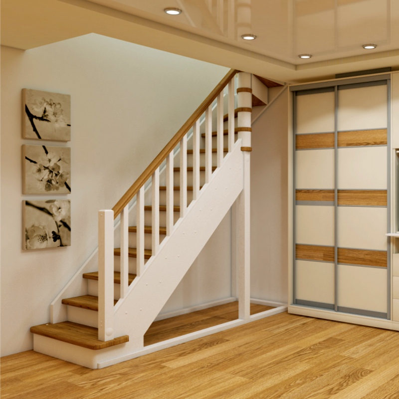 Есть два основных типа лестниц. Первый вариант, это маршевая конструкция. Она имеет минимум один пролет.