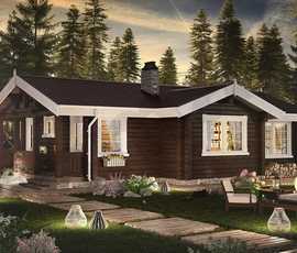 Двухэтажный дачный домик из оцилиндрованного бревна выглядит очень мило и по-деревенски. Кроме того, дом оснащен дополнительным бонусом – собственной баней.