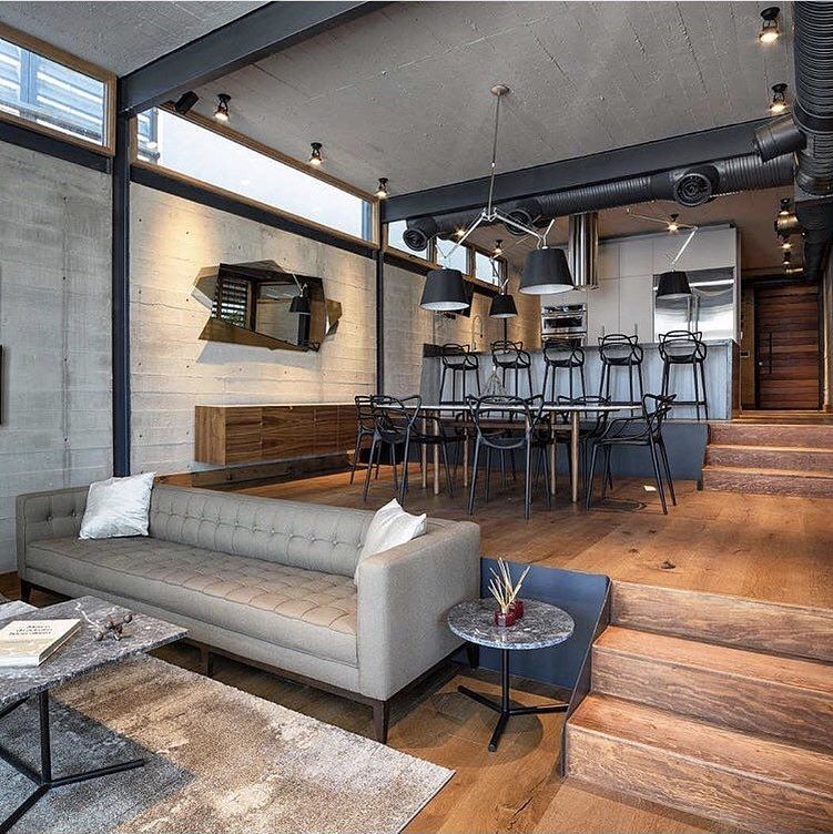 дизайн интерьера кухни-гостиной в стиле лофт