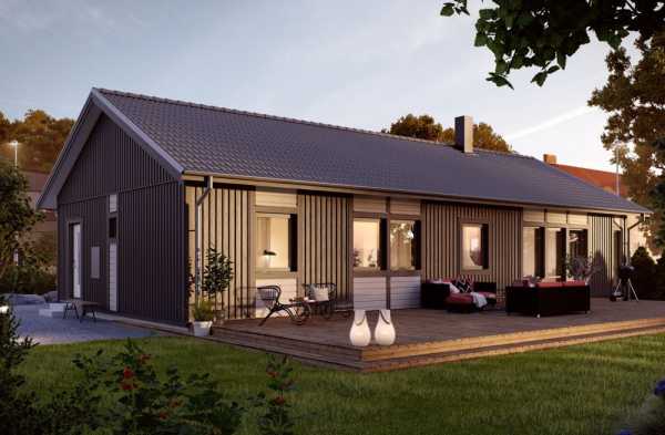 Одноэтажный каркасный дом с террасой уместен в следующих ситуациях: