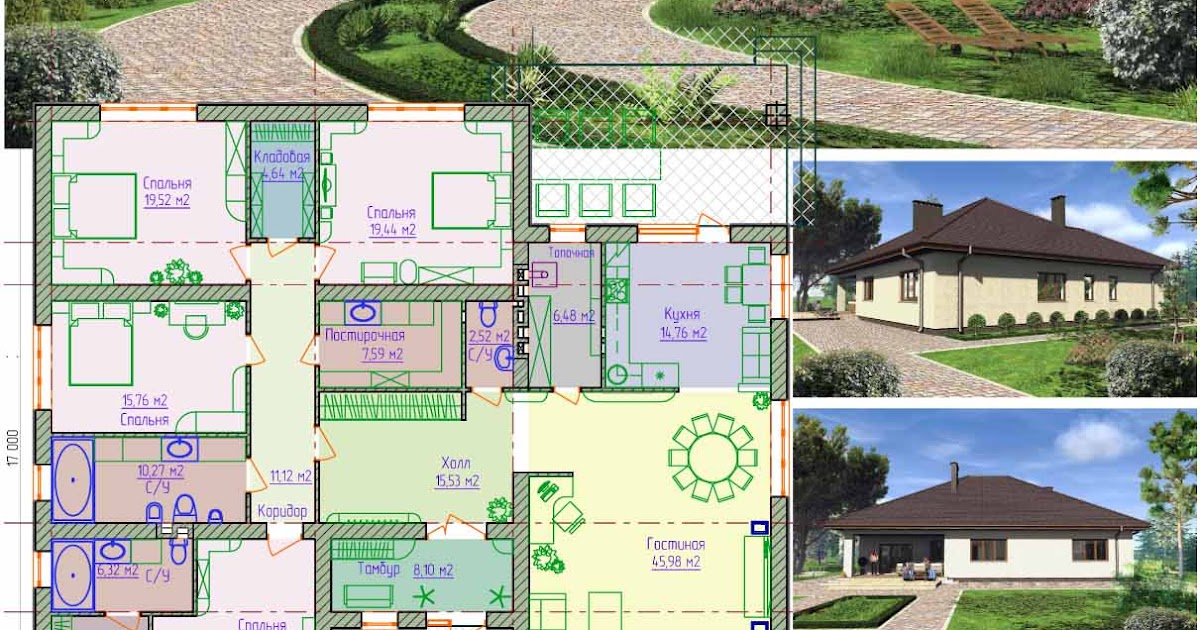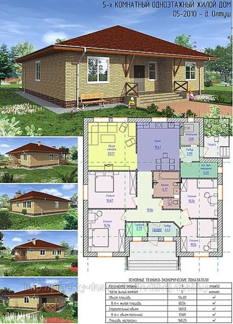 Проекты 5 комнатных домов одноэтажных: готовые и типовые. Каталог содержит планировки, планы и чертежи