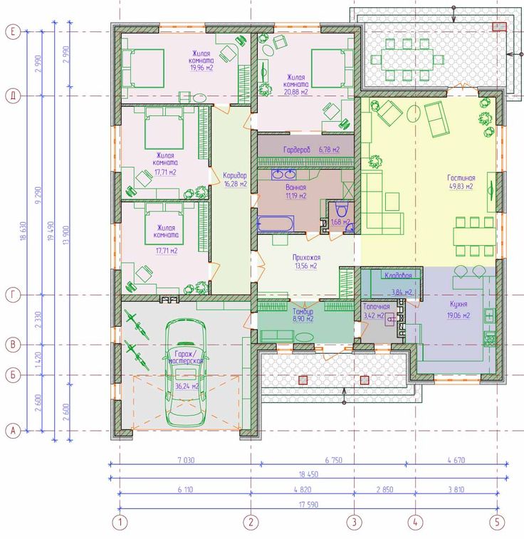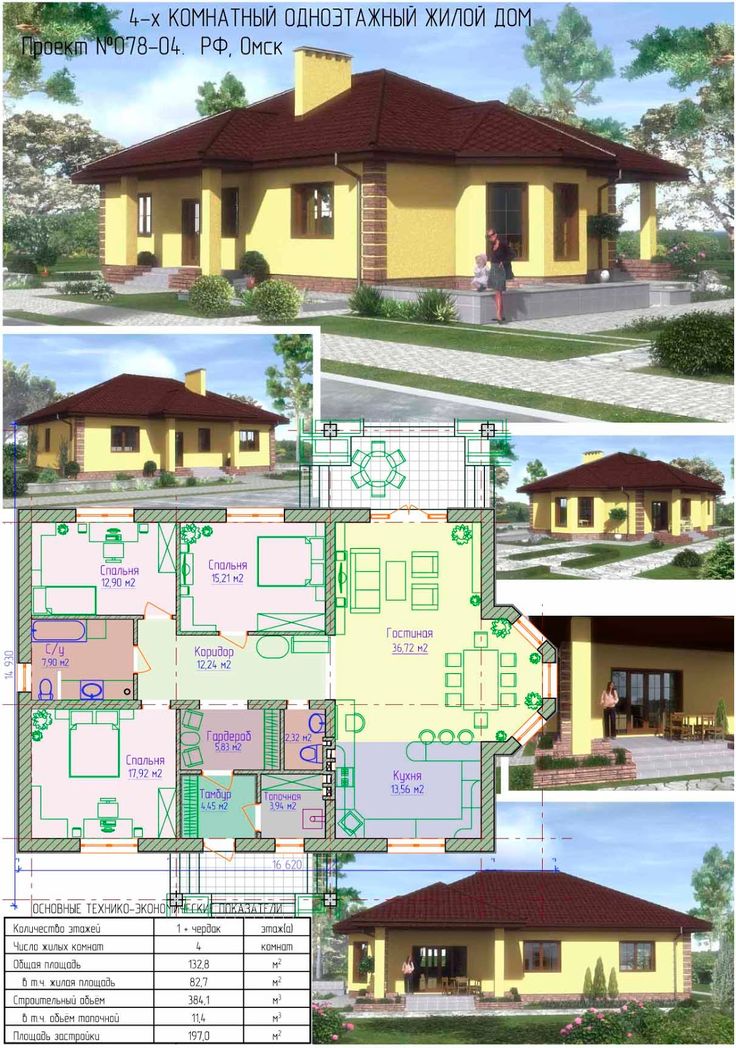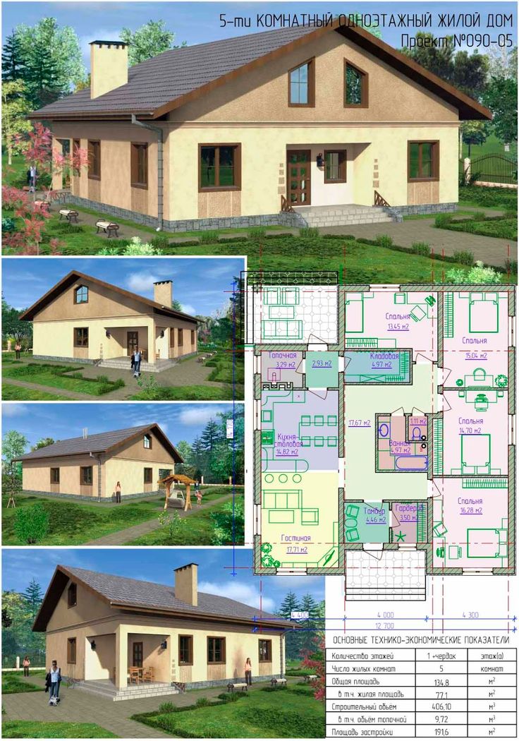 Одноэтажный дом с 5 спальнями (планы)