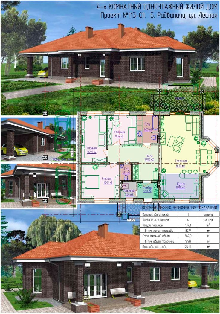 Проекты одноэтажных домов с 5 спальнями