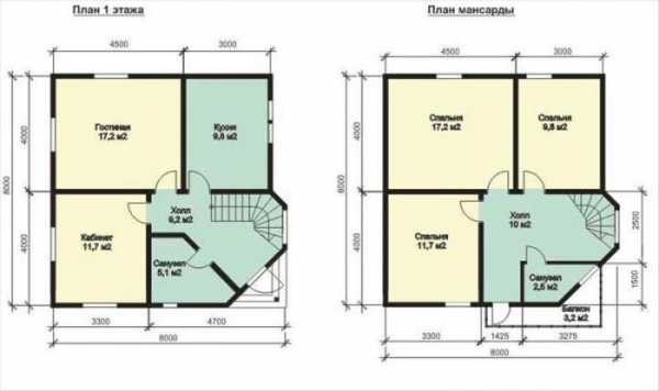План двухэтажного дома 8 на 8