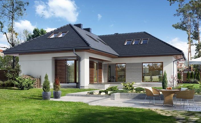AS-2595 — проект одноэтажного дома из газобетонных блоков с гаражом и террасой