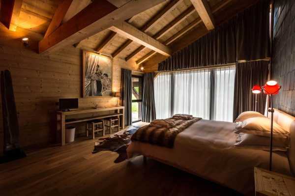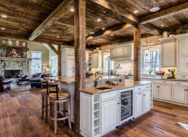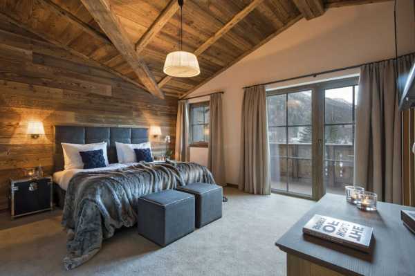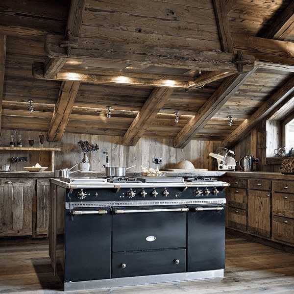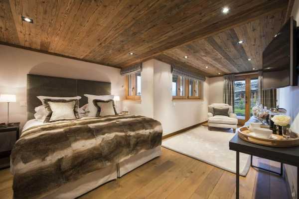 Потолки высокие, деревянные. Потолочные балки чудесно передают атмосферу альпийского дома, хотя в современном варианте являются частью декора (в мансарде открытые балки — часть стропильной системы крыши).