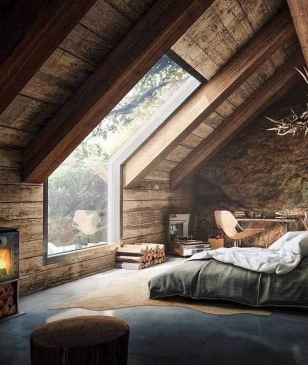 - контрастная расцветка, которая достигается за счет сочетания светлых тонов оконных проемов и темных деревянных панелей;