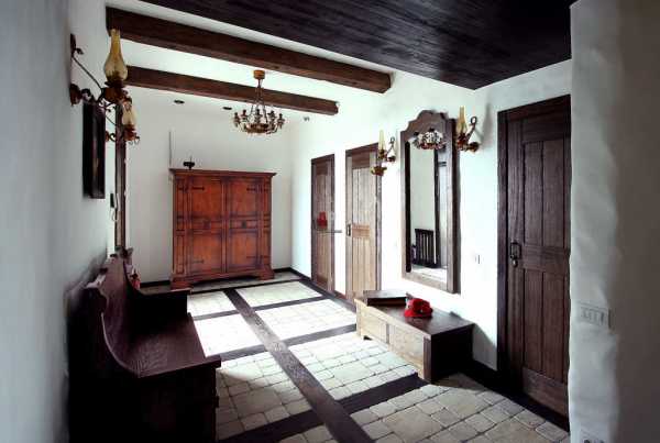 Бытовую и цифровую технику, охранные системы стараются спрятать под стенными деревянными панелями, ширмами или фасадами мебели. Такая маскировка сохраняет старинную атмосферу жилища.