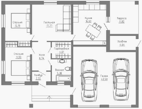 Совмещение. Чтобы стены не уменьшали внутреннюю площадь, практикуется (на 1 этаже) объединение в одно пространство двух-трех зон — кухни, столовой и гостиной. Такая планировка пространства обеспечивает простор и общение.