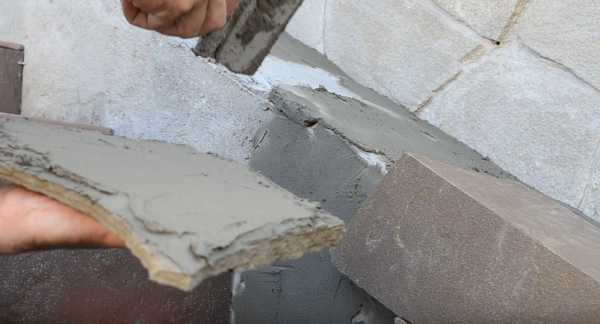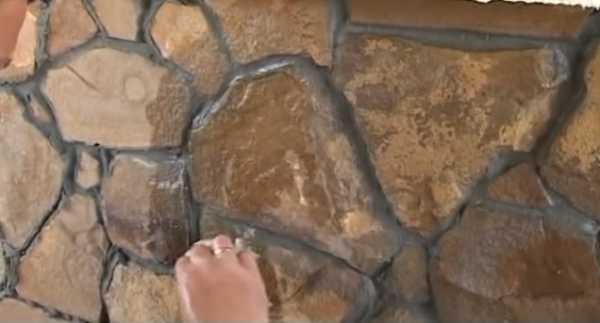 Шаг 4. Берут второй фрагмент, увлажняют, наносят раствор и аккуратно стыкуют камень с предыдущим. Старайтесь вдавливать камни так, чтобы клей заполнял зазоры между ними, но не пачкал лицевую сторону. Если это все же случилось, раствор нужно сразу вытереть влажной тряпкой, ведь после высыхания удалить его следы очень трудно.