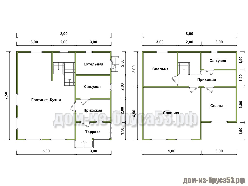 - Проекты домов из бруса 8х8