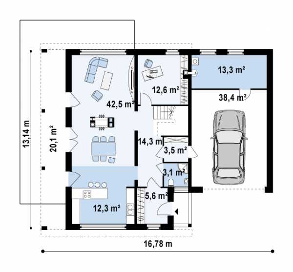Π‘ΠΎΠ²ΡΠ΅ΠΌΠ΅Π½Π½ΡΠΉ ΠΏΡΠΎΠ΅ΠΊΡ Π΄ΠΎΠΌΠ° Ρ ΠΏΠ»ΠΎΡΠΊΠΎΠΉ ΠΊΡΡΡΠ΅ΠΉ ΠΈ Π±Π°ΡΡΠ΅ΠΉΠ½ΠΎΠΌ ΠΏΠ΅ΡΠ΅Π΄ Π²Ρ