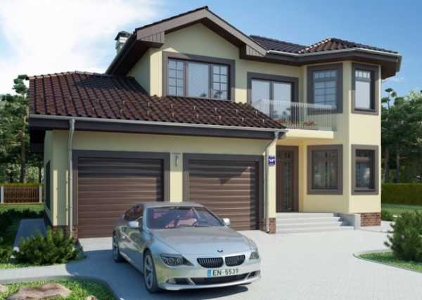 Впечатляюще будут выглядеть проекты двухэтажных домов с гаражом на две машины с мансардой.