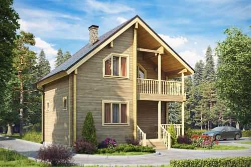 Проект №233. Дом из бруса 8х8 с мансардой и балконом