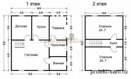 Планировка двухэтажного дома 8×8Планировка домов 8×9