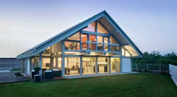 Очень хороший вариант одноэтажного дома со сплошным остеклением одной из стен. Практическое исполнение потребует вложений, однако получается дом с естественным освещением и теплом за счет солнечной энергии. Кроме того, фотография любого из таких домов наглядно показывает эстетичность строения, его индивидуальность и необычность.