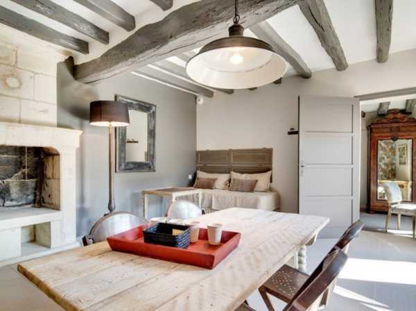 Раз мы уже заговорили о невысоких потолках то нужно отметить некоторые их особенности. Так, потолочные балки для Прованса обязательны. Это та характерная черта, которая безошибочно помогает отличить кантри от шебби-шика. Второй нюанс – это фактурность. Если вы выбрали штукатурку, то она должна быть выполнена слегка небрежно.