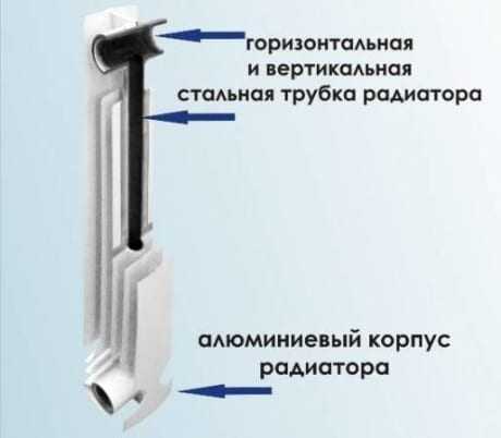 Этот вид батарей разработан специально для систем централизованного отопления. По сути, они представляют собой стальные радиаторы, залитые в алюминиевую оболочку. Сталь контактирует с теплоносителем, а слой алюминия обеспечивает быструю передачу тепла в помещение.