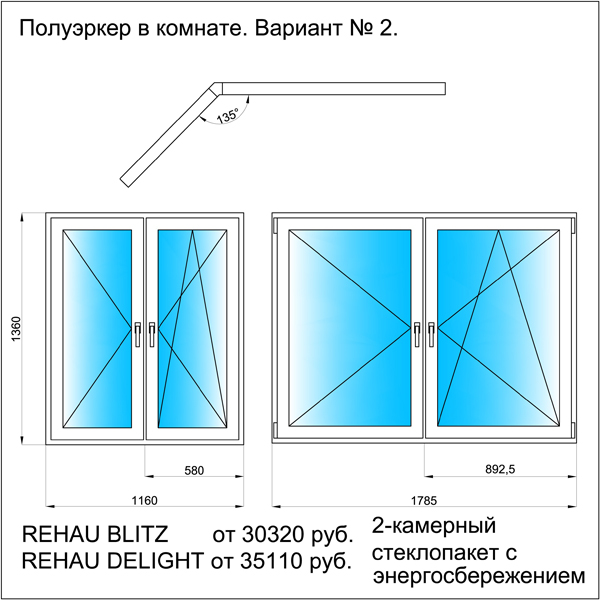 - Размеры и конфигурации носового окна и эркера