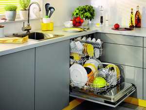 Также есть машины высотой 87 см, но их нельзя назвать встраиваемыми. Обычно эти посудомойки ставят между секциями гарнитура, и они по размерам не отличаются от мебели.