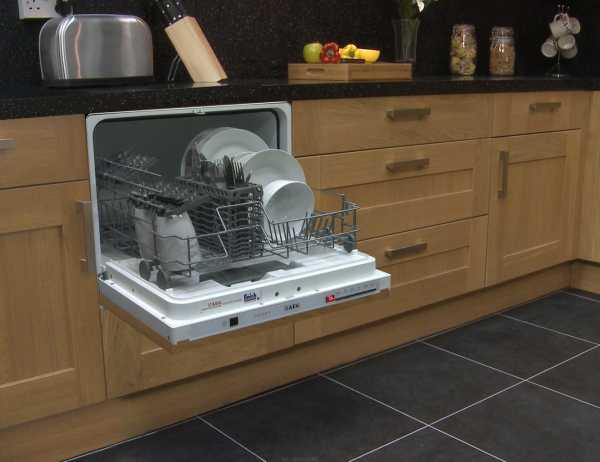 Компактная посудомоечная машина хороша только своими габаритными размерами, в нее поместится до 7 комплектов. Иногда в эти модели не входят даже большие тарелки.