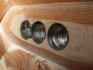 - В строениях из оцилиндрованного бревна используется способ монтажа проводов на изоляторах. В первую очередь монтируются керамические изоляционные ролики, затем к ним крепится проводка. Такой способ считается устаревшим, однако, пользуется определённой популярностью и по сей день. Некоторые компании специализируются на такой проводке и производят витые пары разных цветов.