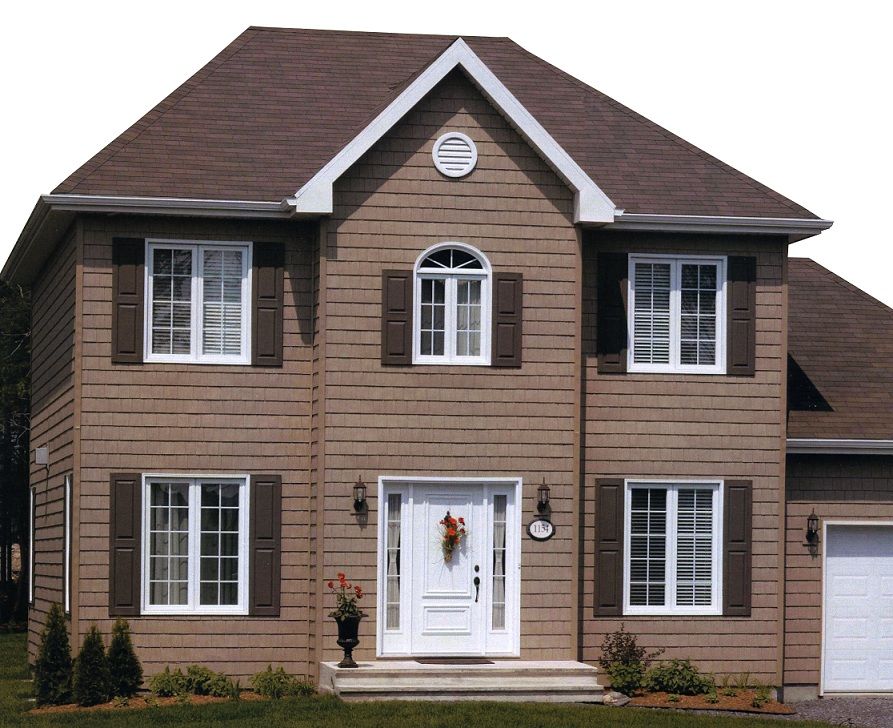 Существует множество различных оттенков коричневого сайдинга, и каждый из них может придать дому свои особенности. Этот светло-коричневый оттенок хорошо сочетается как с белой отделкой, так и с более светлыми теплыми серыми кровельными покрытиями. В доме есть богатство и индивидуальность, ни один цвет не берет верх или не выделяется.